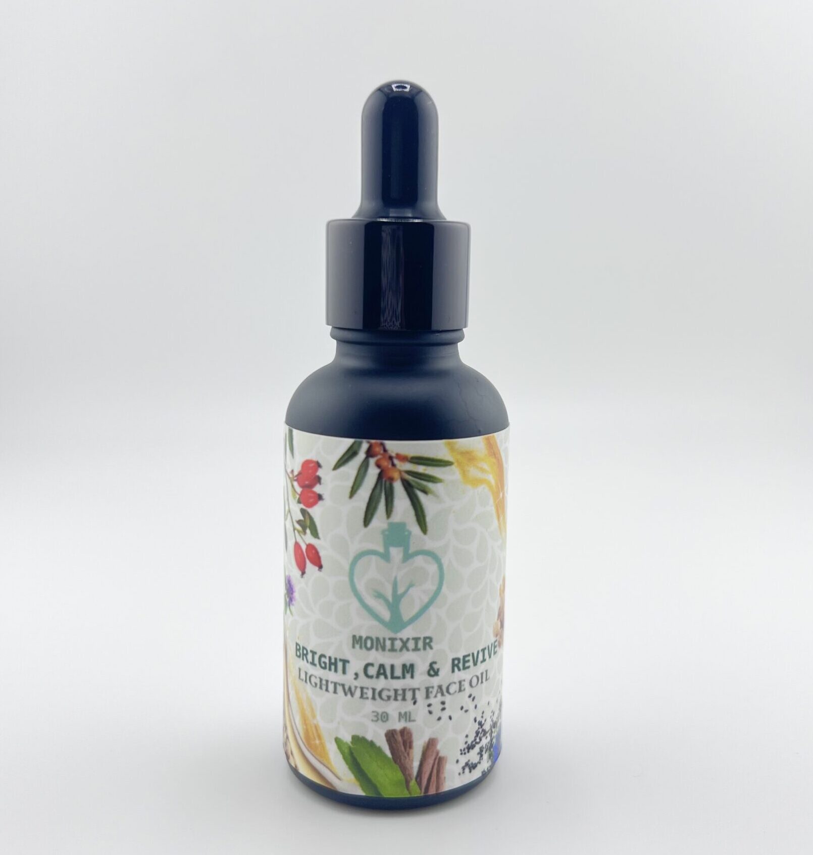 Ingredients: Squalane (olive), Rosa canina (rosehip) seed oil, Ricinus communis seed oil, Nigella sativa seed oil, Boswellia carterii (frankincense resin), Hippophae rhamnoides fruit (buckthorn) oil, Bakuchiol, Glycyrrhiza glabra (licorice) root powder, Tocopherol, Helianthus annuus seed oil, Rosmarinus officinalis leaf extract, Curcuma longa root powder
